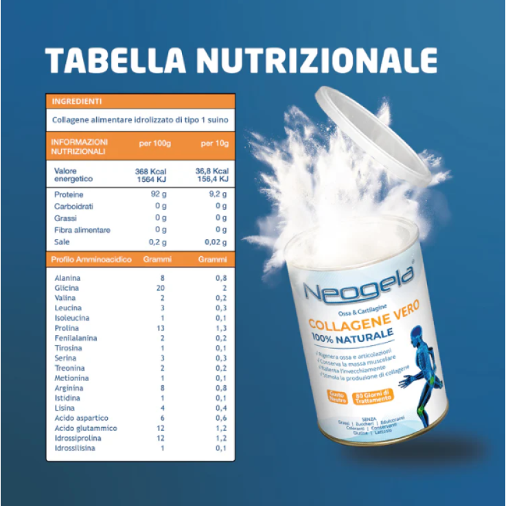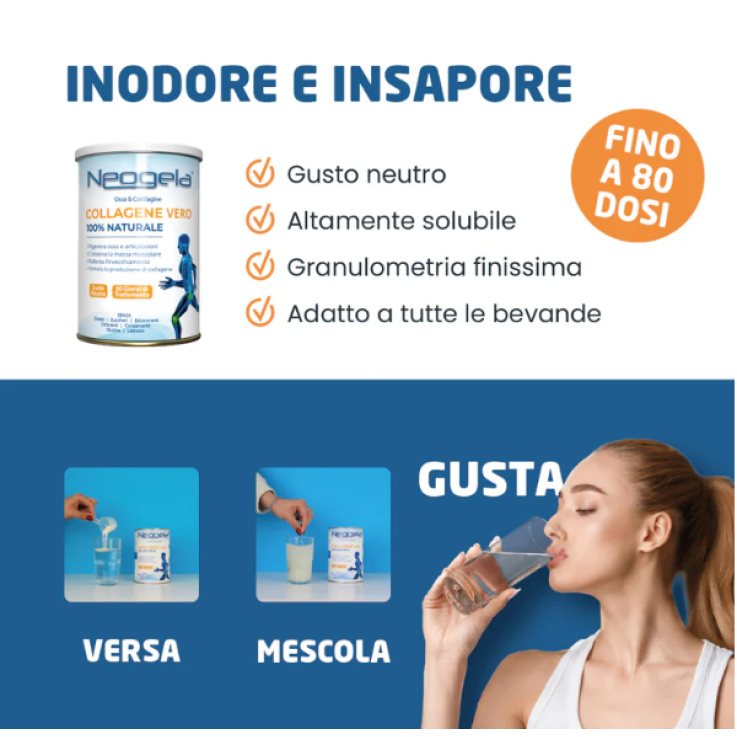 Neogela è un integratore alimentare a base di collagene utile per il benessere delle cartilagini e delle articolazioni delle ossa.